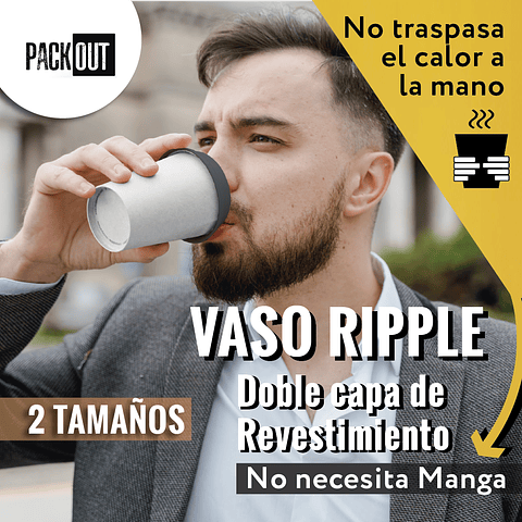 OFERTA MAYORISTA!!! Vaso Café Negro Ripple Doble Capa + Tapa 1.000 Unidades